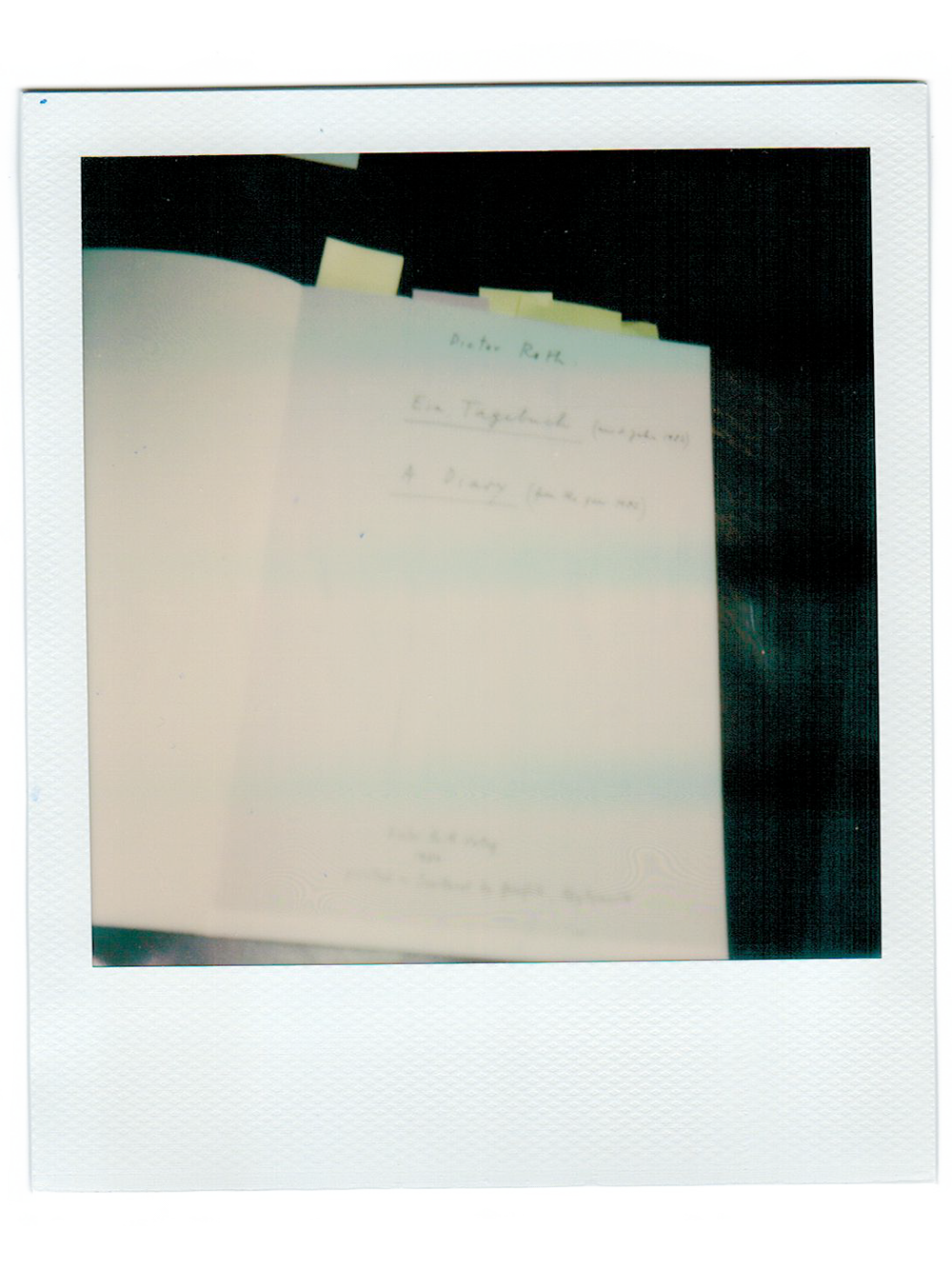 Ich hatte mir im Internet ein teures antiquarisches Exemplar von Ein Tagebuch (aus dem Jahre 1982) bestellt, dem Katalog zu Dieter Roths Auftritt im Schweizer Pavillon der Venedig Biennale 1982. Die Ziffer 1982 im Titel, das Jahr meiner Geburt, hatte mich gleich angezogen und das Begehren ausgelöst, diesen Katalog zu besitzen. Als das Buch bei mir eintraf, blätterte ich angemessen andächtig die Seiten der im Selbstverlag kopierten und auf Island gedruckten Seiten durch. Pro Tag ein oder zwei alltägliche Polaroids aus dem Künstleratelier, im ersten Teil mit rein protokollarischen Notizen versehen (wo, wer und wann), ab dem 17. März dann begleitet von zunehmend erzählerischen, selbstreflexiven, ausschweifend berichtenden Einträgen, alles handschriftlich, als collagiertes Faksimile. Eine Mischung aus Arbeitsjournal und Selbstbeobachtung.