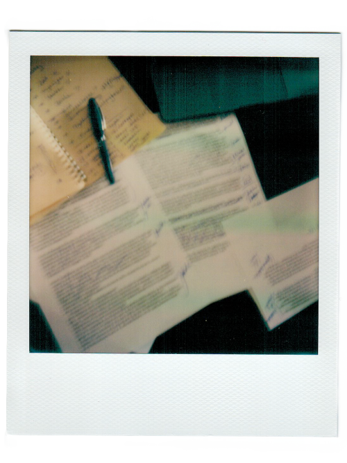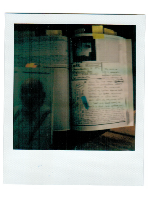 – Seit 3–4 Wochen kommt die Idee immer deutlicher (und erschreckender) herauf, die Polaroids mit Texten zu begleiten, vielleicht oder: sicherlich, um die wahrscheinlich abstossende Öde und Inkompetenz der Filmschau aufzuwiegen, mit (Darstellung von) Reflektionen, welche das Misglückte als begehrens- oder erstrebenswert zeigen.