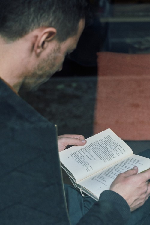 Zu dieser Haltung gehört – und das ist eine Anekdote über dich, die ich sehr aufschlussreich fand – dass, weil du so viel liest, du immer noch manchmal durch die Straßen läufst, mit einem Buch in der Hand, und auf einmal merkst, die Orientierung verloren zu haben. Ich würde die Geschichte zum Abschluss weiterspinnen und dich fragen wollen: Was wäre, wenn du mit diesem Buch in der Hand durch die Straßen läufst, tief darin versunken, und plötzlich jemanden unangenehm heftig anrempelst und dieser Person als Zeichen der Entschuldigung …