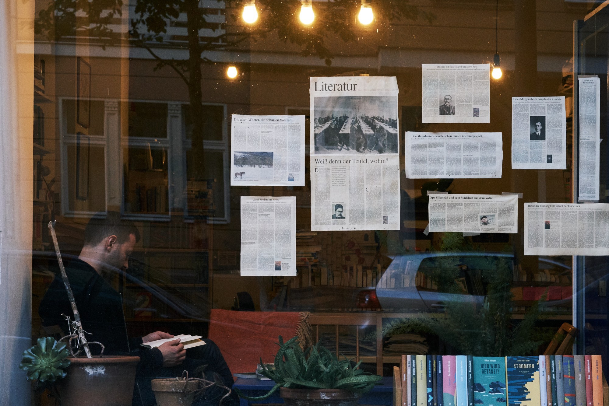 Wir treffen uns nun ein zweites Mal. Es ist September in Berlin-Schöneberg. Sonnenlicht fällt in breiten Streifen auf den Bordstein vor der Adresse des Guggolz Verlags. Sebastian spricht warm und umarmend, wie immer. Er ist das gemalte Bild eines Büchermachers, wie es nur noch wenige gibt. Seine Liebe zur Literatur ist aufrichtig. Die Glühlampen brennen schwach angesichts dessen, was sie beleuchten. Wir gehen nach draußen, denn wir wollen eine Frage als Video aufnehmen. Passanten gehen durch das Bild, einer grüßt. Anwohner. Was sie wohl von uns denken? Der Himmel bedeckt sich. Die Belichtung wechselt. Das Bild der Kamera ändert seine Helligkeit sekündlich, während Sebastian spricht.